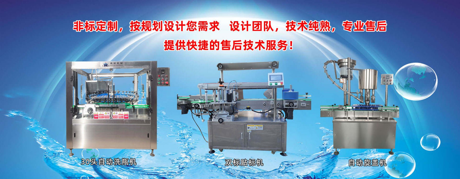 青州市惠聯(lián)灌裝機(jī)械有限公司是一家集生產(chǎn)研發(fā)、銷售、服務(wù)于一體的液體灌裝成套設(shè)備生產(chǎn)企業(yè),可根據(jù)廠家要求設(shè)計(jì)合理液體灌裝生產(chǎn)線,為用戶提供技術(shù)咨詢、設(shè)計(jì)工藝、場(chǎng)區(qū)平面布置、工藝改造、設(shè)備安裝調(diào)試等完善服務(wù)。 公司生產(chǎn)制造各種類型液體灌裝機(jī)、過濾機(jī),水處理設(shè)備及液體灌裝成套設(shè)備。主要產(chǎn)品有:白酒、葡萄酒、黃酒等酒水灌裝機(jī)、食用油、機(jī)油、潤(rùn)滑油等油類灌裝機(jī)、醬油醋、老抽、生抽等調(diào)味品灌裝機(jī)、防凍液、玻璃水灌裝機(jī)、酒精、84消毒液灌裝機(jī)、車用尿素灌裝機(jī)、口服液灌裝機(jī)、洗滌劑灌裝機(jī)等多種液體、膏體灌裝設(shè)備,全自動(dòng)/半自動(dòng)灌裝機(jī)型號(hào)多,規(guī)格全,洗瓶機(jī)、瓶子封口機(jī)、打塞機(jī)、熱縮機(jī)、瓶子烘干機(jī)、貼標(biāo)機(jī)、噴碼機(jī)、輸送線、裝箱機(jī)、水處理設(shè)備等全套生產(chǎn)線相關(guān)配套設(shè)備齊全,自產(chǎn)自銷,一站式購(gòu)齊,售后無(wú)憂。